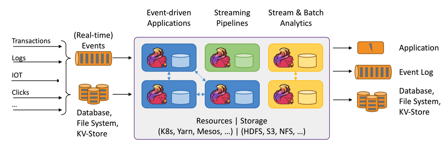 Apache Flink, veri akışları üzerinden dağıtılmış hesaplama için olanaklar sağlamayı amaçlayan çekirdeği java ve scala dili ile yazılmış olan bir veri akış motorudur. Toplu iş süreçlerini özel bir veri akışı durumu olarak ele alan Flink, hem toplu işler hem de gerçek zamanlı bir işlem çerçevesi olarak etkilidir, Büyük ölçekli verileri işleyebilir. Flink ayrıca FlinkML adlı kendi makine öğrenme kütüphanesine, kendi SQL Sorgusu’na (MRQL) ve grafik işleme kütüphanelerine sahiptir. Flink ayrıca sürekli akış modeli için oldukça esnek bir akış penceresi sunar. Bu, hem toplu işin hem de gerçek zamanlı akışın bir sisteme entegre edilmesini sağlar. Sürekli akış modeli için son derece esnek akış pencereleri bulundurur. Flink, diğer açık kaynaklı veri işleme ekosistemleriyle entegre edilmiştir. Etkili, hızlı, doğru ve hataya dayanıklı bir yapıya sahiptir.